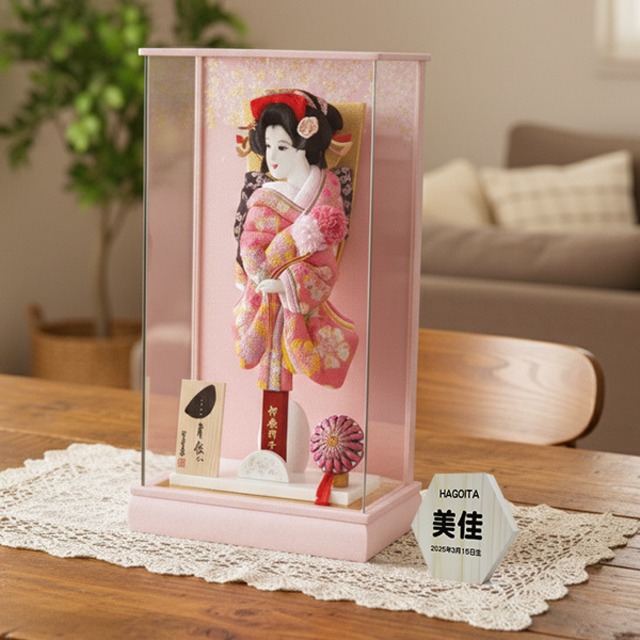 平安道翠作 アクリルケースのお洒落な羽子板 13号 美月 有松絞りと金襴織地に豪華な刺繍を施し、丹念に押絵して製作された13号美月振袖羽子板です。 ケースは、軽量アクリル製のパノラマ黒塗木製カブセ式ケースを使用しています。 ケースバックと正面下部にも刺繍を施した可愛らしいお洒落な羽子板ケース飾りです。 人気の13号コンパクトサイズのアクリルケース羽子板ケース飾りです。 ◇商 品 詳 細◇ 【羽 子 板】 ・13号 美月 ・有松絞りピンク/金襴赤刺繍入り振袖押絵羽子板 本つげかんざし 【ケース】 木製黒塗カブセ式パノラマ軽量アクリルケース 絹鞠飾り付き ■サイズ 間口29×奥行き24×高さ53cm 【特 典 品】 ・お名前札をプレゼントいたします。 お子様名と生年月日を記入欄にお書き下さい。 【備 考】 ・この商品は、2日~3日で出荷出来ます。(送料無料) ・熨斗やギフト包装が必要な場合は、要望欄にお書きください。 ・モニター発色の具合により、色が実際の物と相違する場合がございます。
