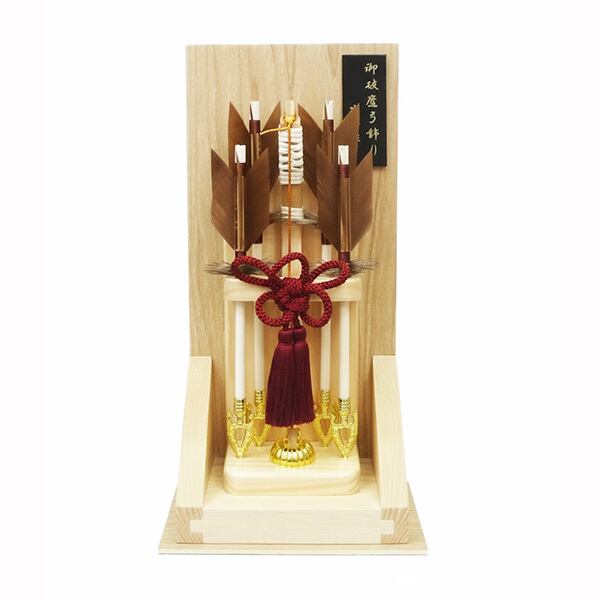 現代のインテリアに調和する、モダンでスリムなデザインの破魔弓飾りです。