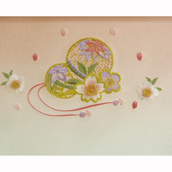 〇洋室にも似合うモダンなケース飾り ケースは清潔感のあるホワイト塗りのカブセ式アクリルケースを使用し、現代のインテリアに調和するようデザインされています。 ケース背景には、淡いピンク色のグラデーションの上に、繊細な桜柄の刺繍が施され、春の訪れを祝う華やかな雰囲気を演出しています。