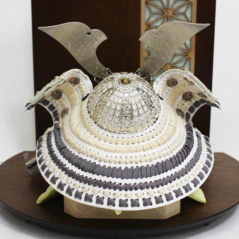 ・兜 小島辰広氏製作 1/6 白銀兜 白和紙小札 正絹白灰糸威し 本革使用