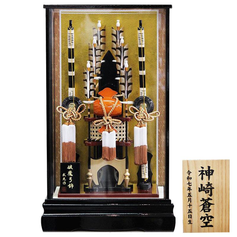 破魔弓 平安道翠監修 20号 天神 豪華 祝小槌付き 網代矢篭ガラスケース飾り 商品コードA000000847