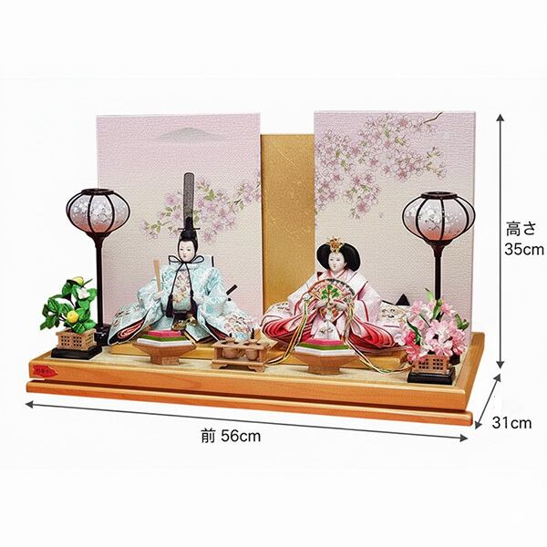 間口56cmタイプですので、リビングや洋室にお似合いの小型の雛人形親王飾りです。