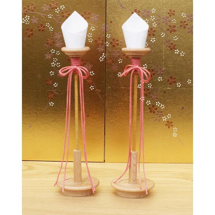 衣裳は、薄青色と白赤ぼかしの花柄を織り込んだ正絹金襴裂で仕立てた素敵な木目込み雛人形です。お飾り台は、人気の木地の質感を活かした白木製で麻の葉模様の透かし彫りとお屏風と同様に駿河蒔絵を施しています。お道具類も木製白木で統一したとてもおしゃれな雛飾りセットです。