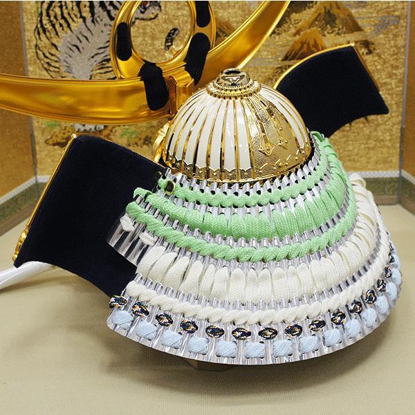 龍玉作 10号 上杉謙信 白鉢兜 白木目塗 収納飾り おしゃれ モダン 五月人形 コンパクト 家紋名前札 金襴兜 送料無料
