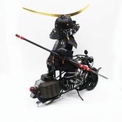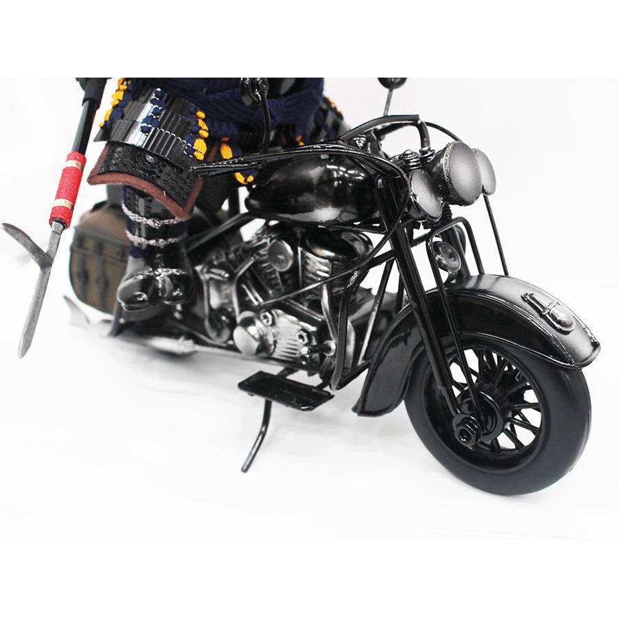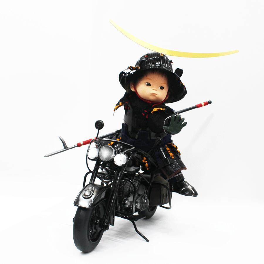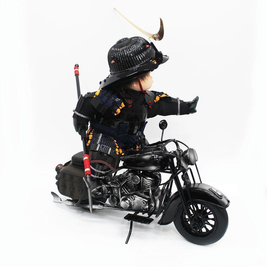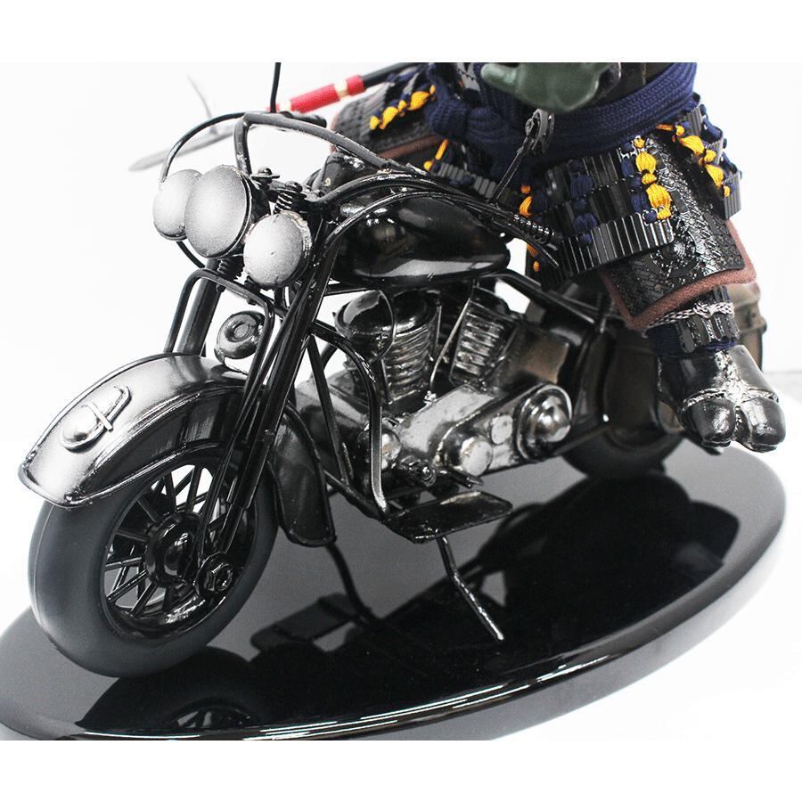 バイクは、甲冑の部品を巧みに加工し組み合わせ製作、さらに伊達政宗公は、本格的な鎧を着せ付け作り上げました。遊び心満載ですが、完成度は非常に高い話題の五月人形大将飾りです。※限定生産品です。お早めにお求めください。