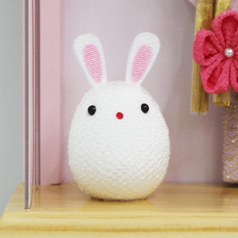 ケースは軽量アクリルケースで人気の白木(無垢材)を用いた、とてもモダンなデザインの壁掛けケースです。可愛らしいちりめん細工のウサギも付いています。