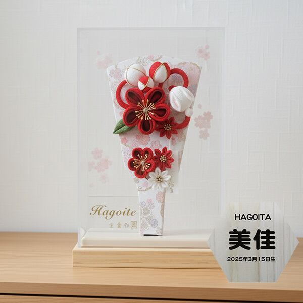 現代のライフスタイルに合わせてデザインされた、コンパクトでおしゃれなつまみ細工の羽子板飾りです。